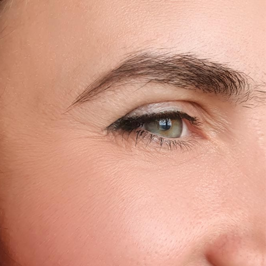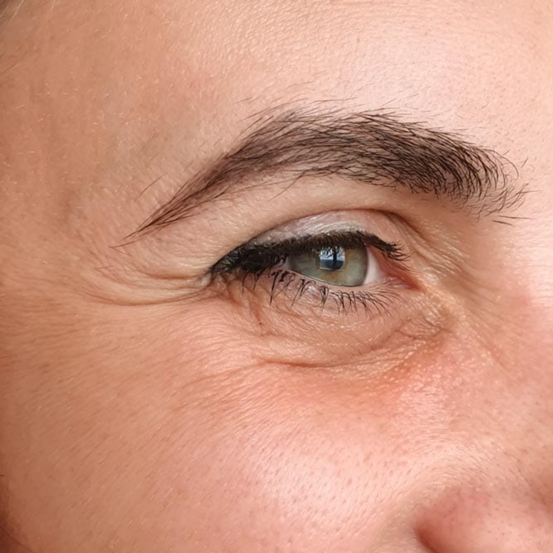 - Pele mais tonificada, firme e uniforme sob os olhos.