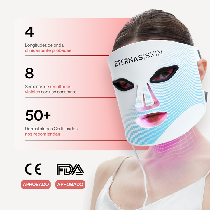 La Máscara Facial de Tecnología LED de Eternas está diseñada para ofrecer resultados visibles desde casa mediante tecnología de luz LED clínicamente probada. Su acción estimula la regeneración celular, favorece la producción natural de colágeno y mejora la textura y luminosidad de la piel sin dolor, sin irritación y sin tiempo de recuperación.